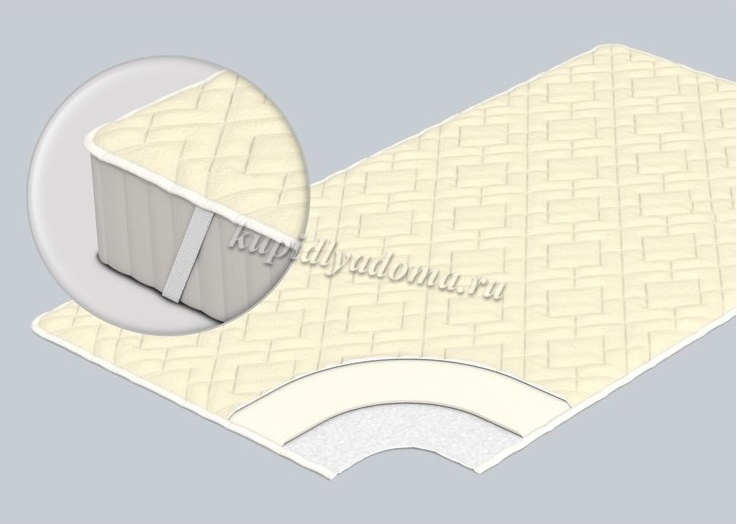 Хлопковый жаккард, 2 слоя синтепона по 200 гр/м2, пенополиуретан 20 мм.