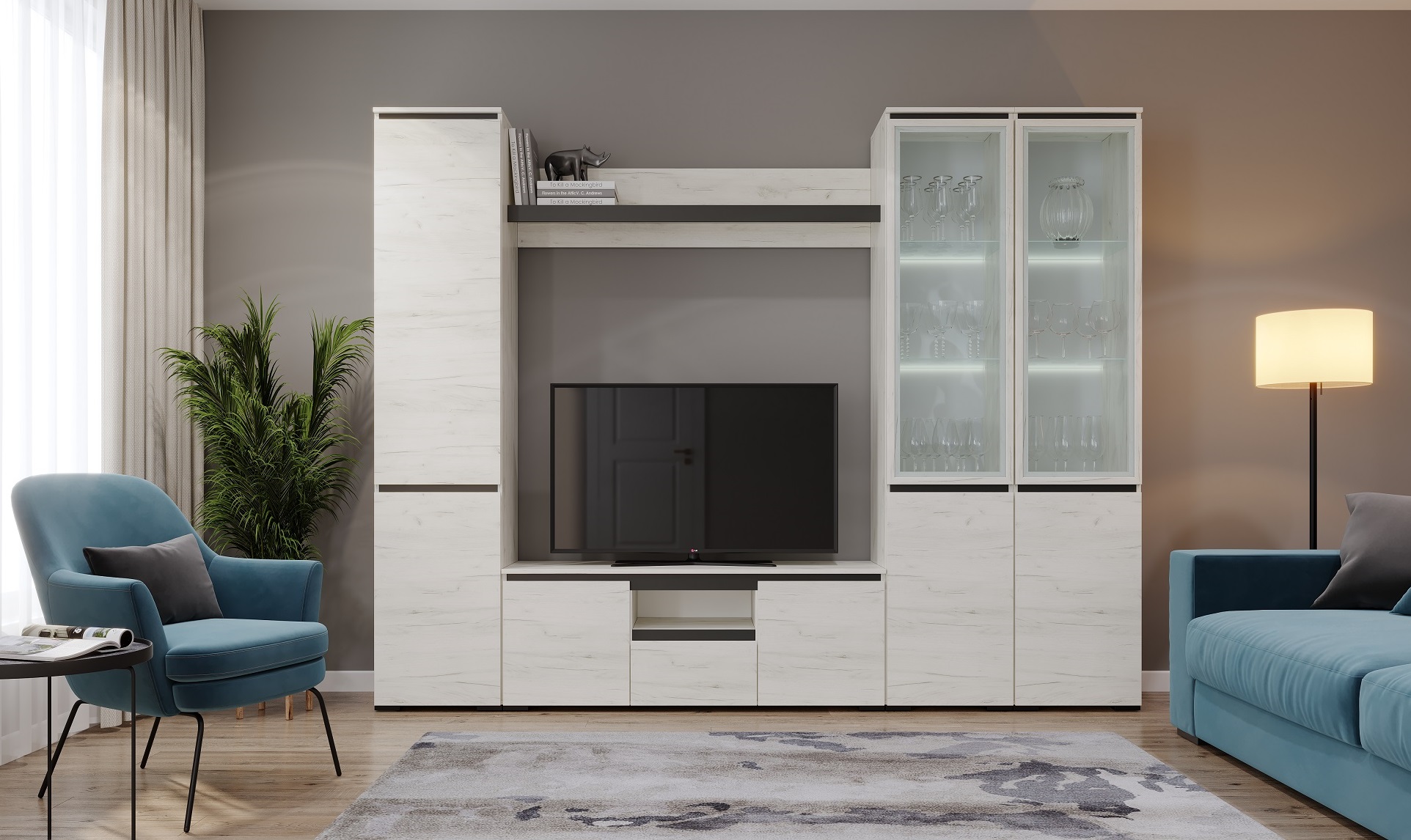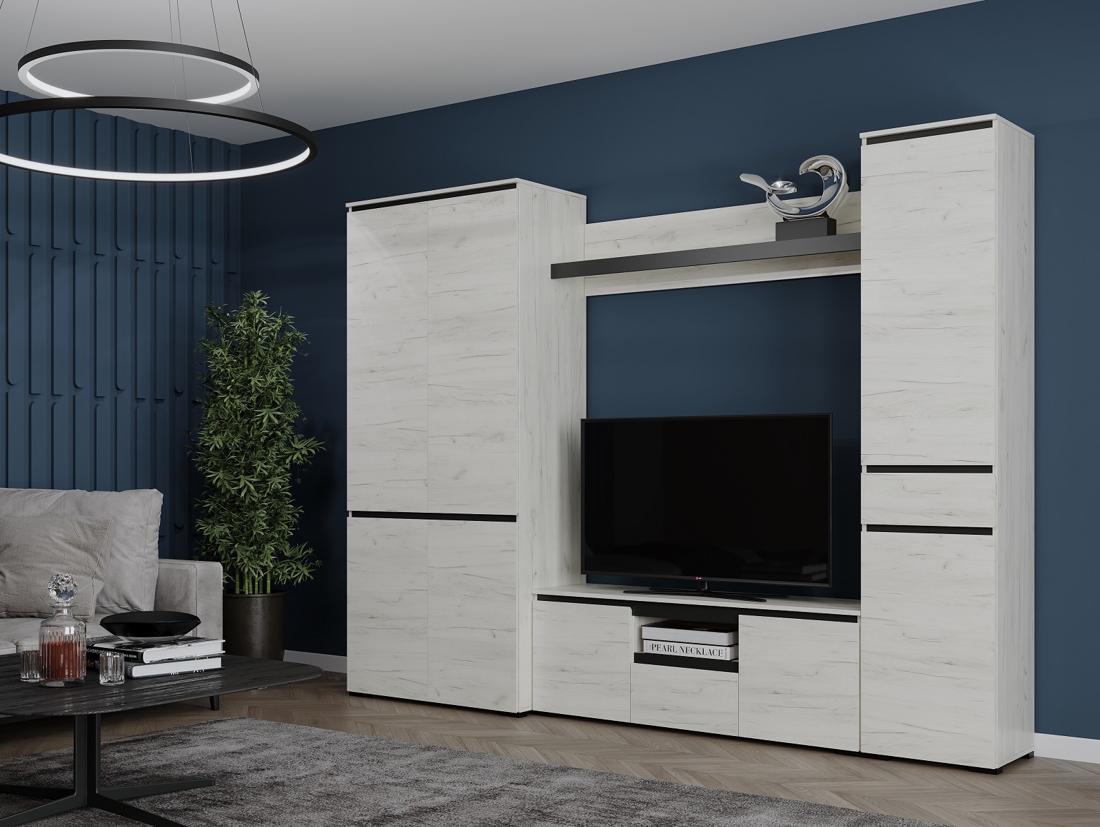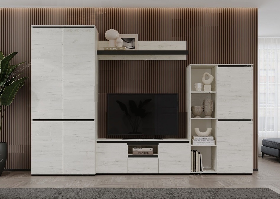 Модульная гостиная Гретта (Дуб крафт белый/Антрацит)