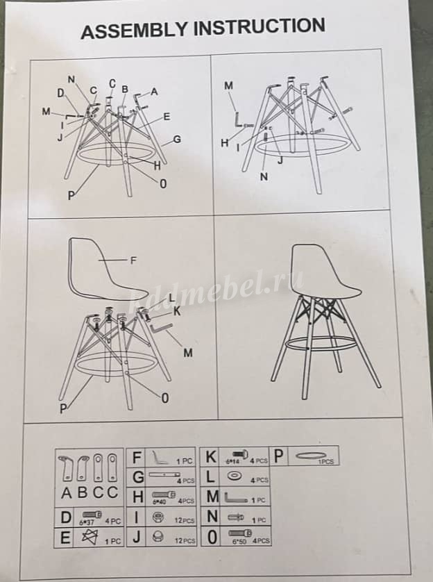 Высота ног (каркас): 670 мм.