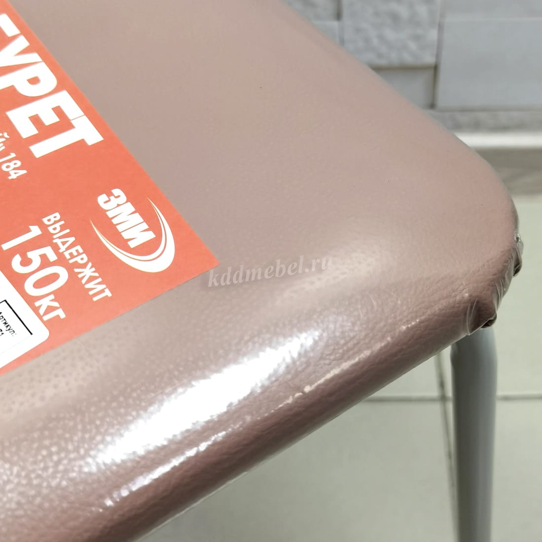 • Табурет Риони квадрат с прострочкой замша (Бежевый 17/Черный профиль)