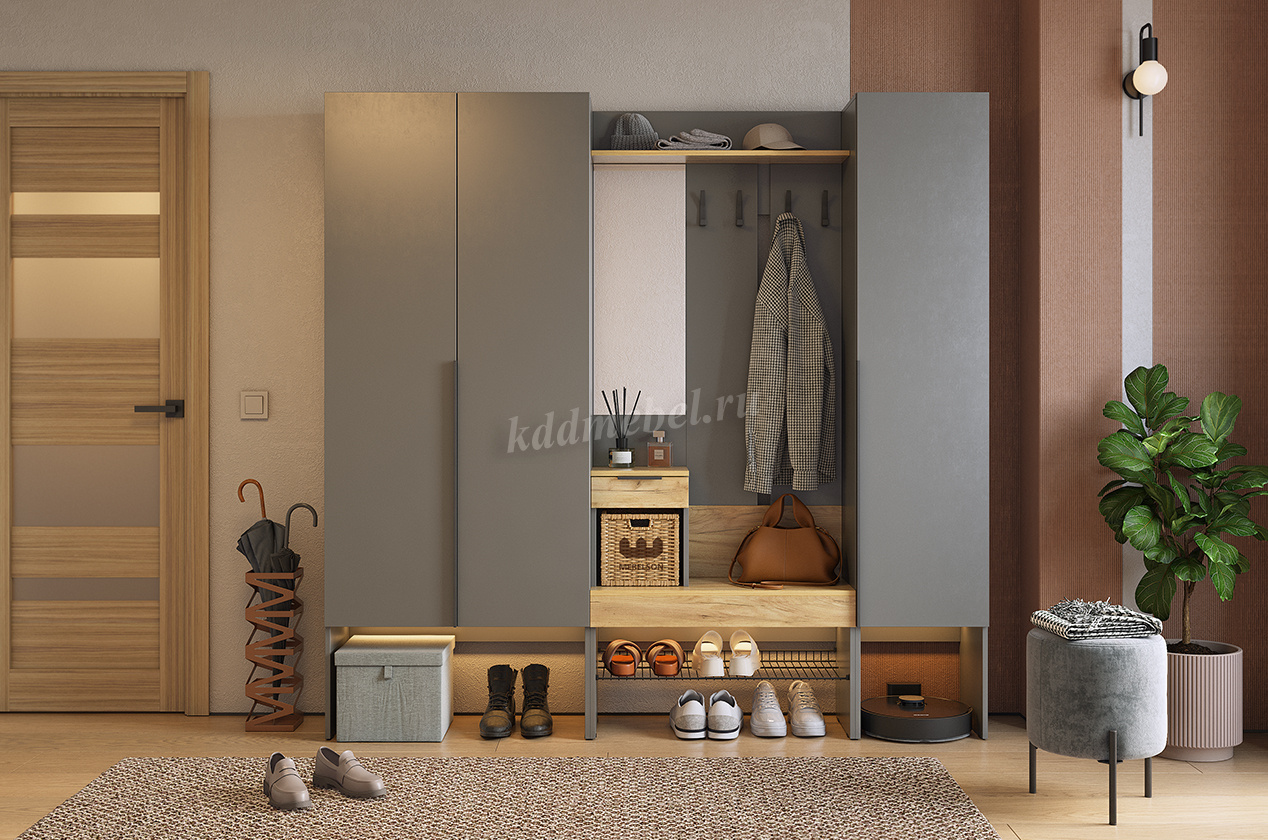 Прихожая К3 Баско (Графит/Дуб крафт золотой)