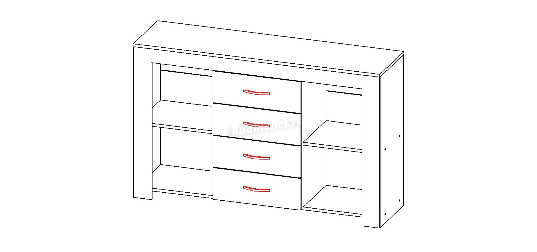 Описание Комод 1400 Квадро-33 (Дуб Делано темный)