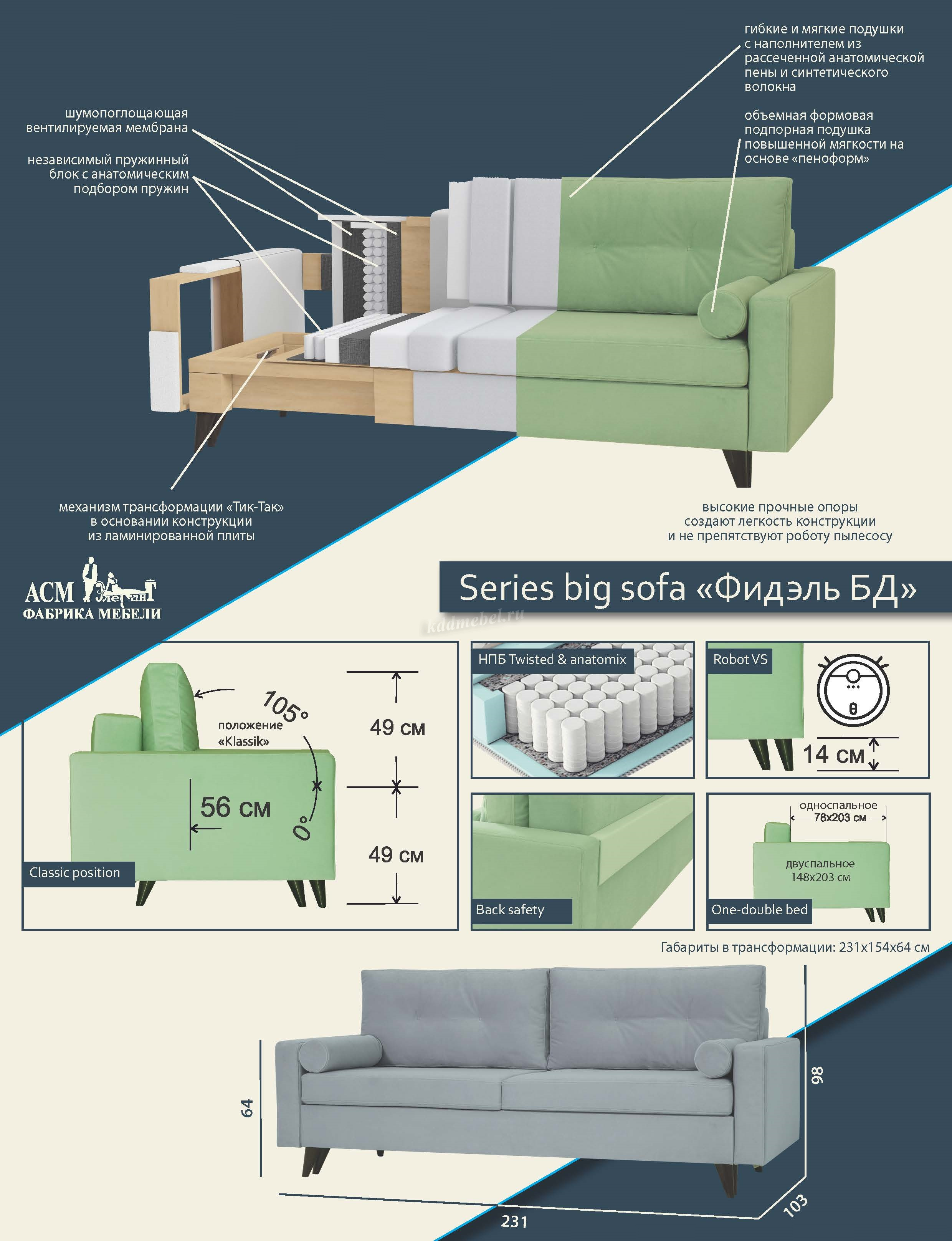 Описание Диван-кровать Фидэль БД (2 кат.)